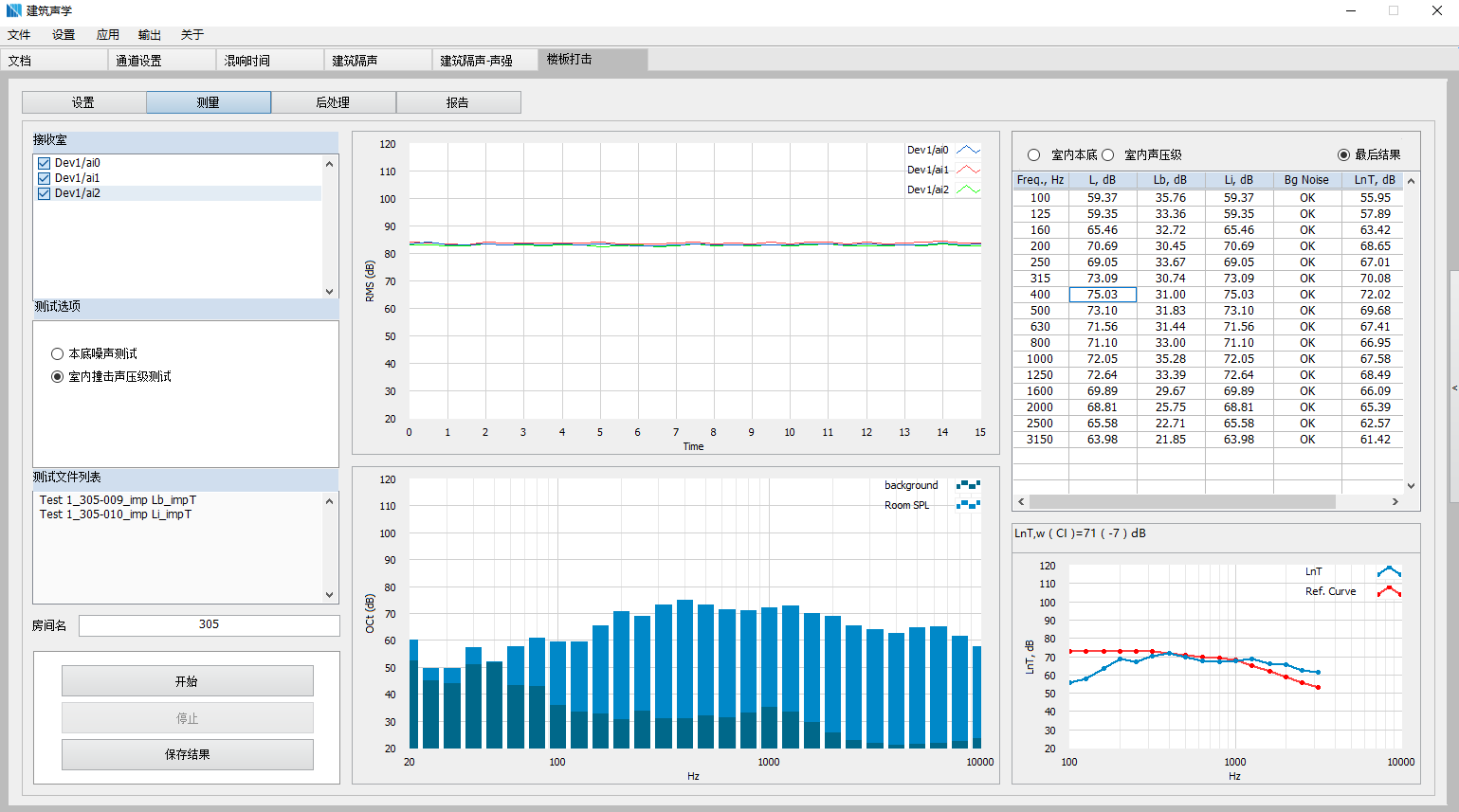 ● 支持撞擊聲隔聲單值評(píng)價(jià)量的計(jì)算和等級(jí)評(píng)估