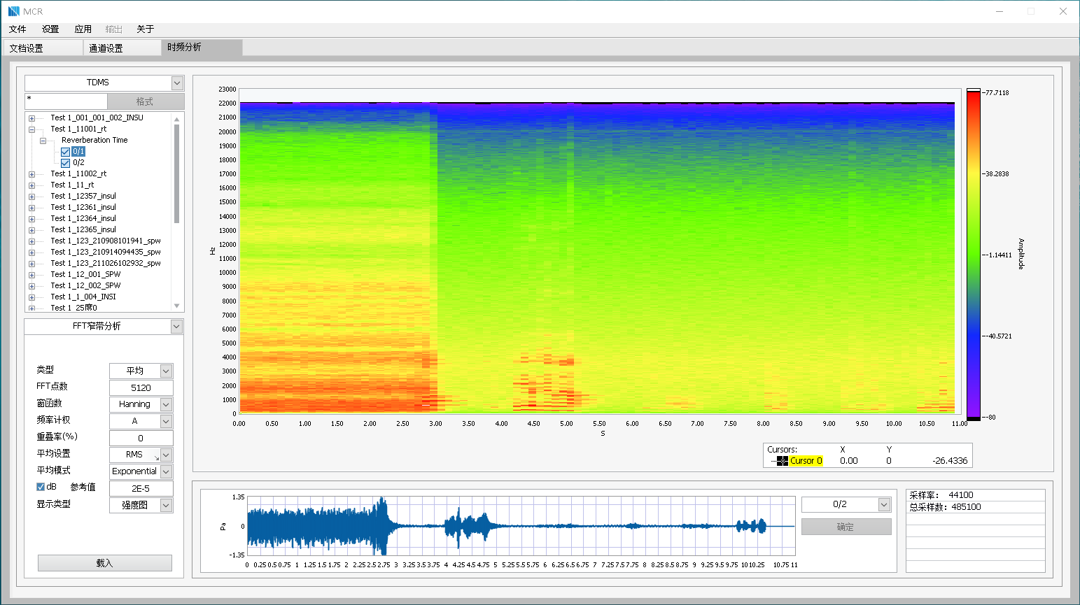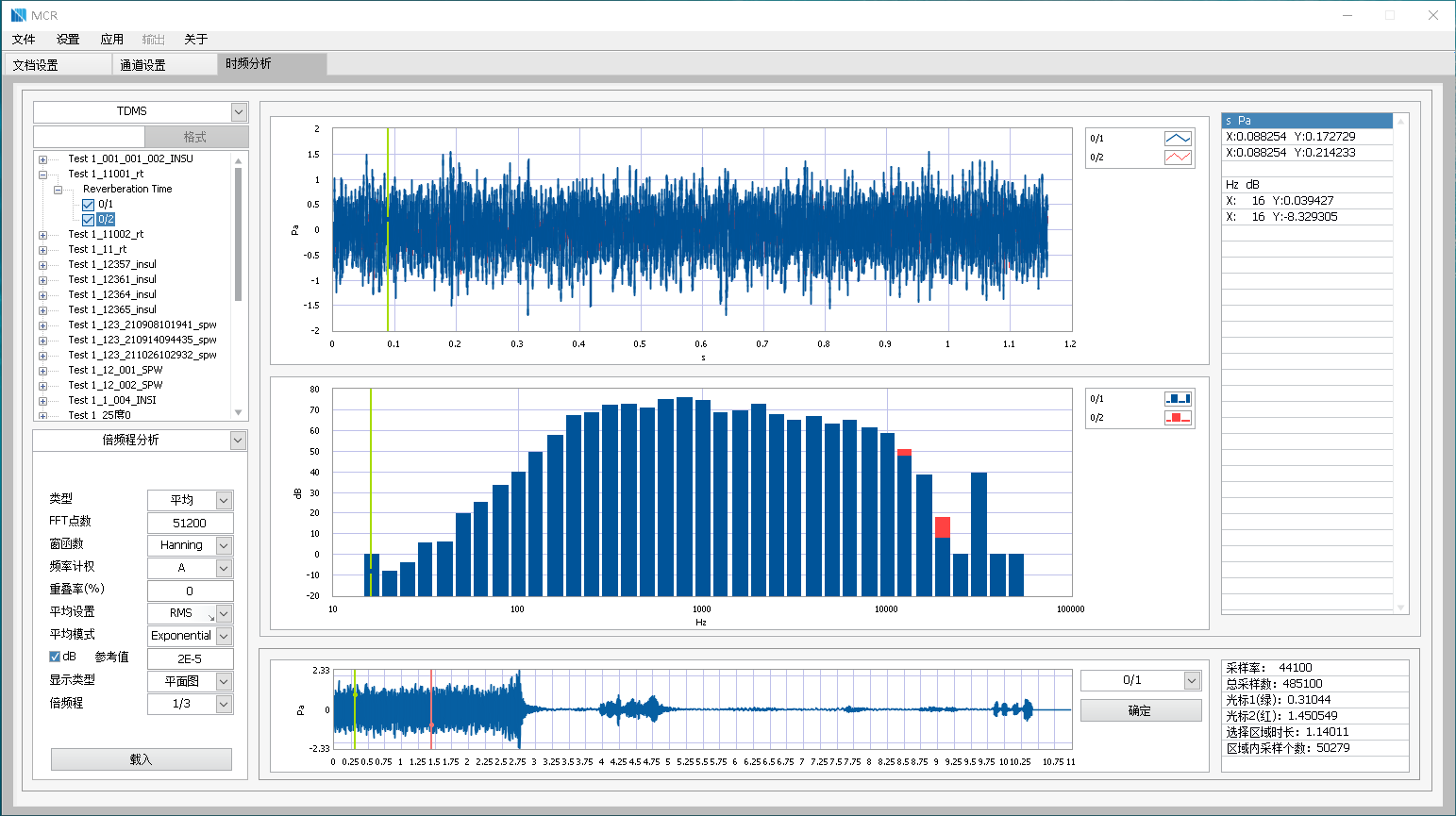 多通道的倍頻程分析界面,可選擇需要分析的數(shù)據(jù)段進(jìn)行OCTAVE分析