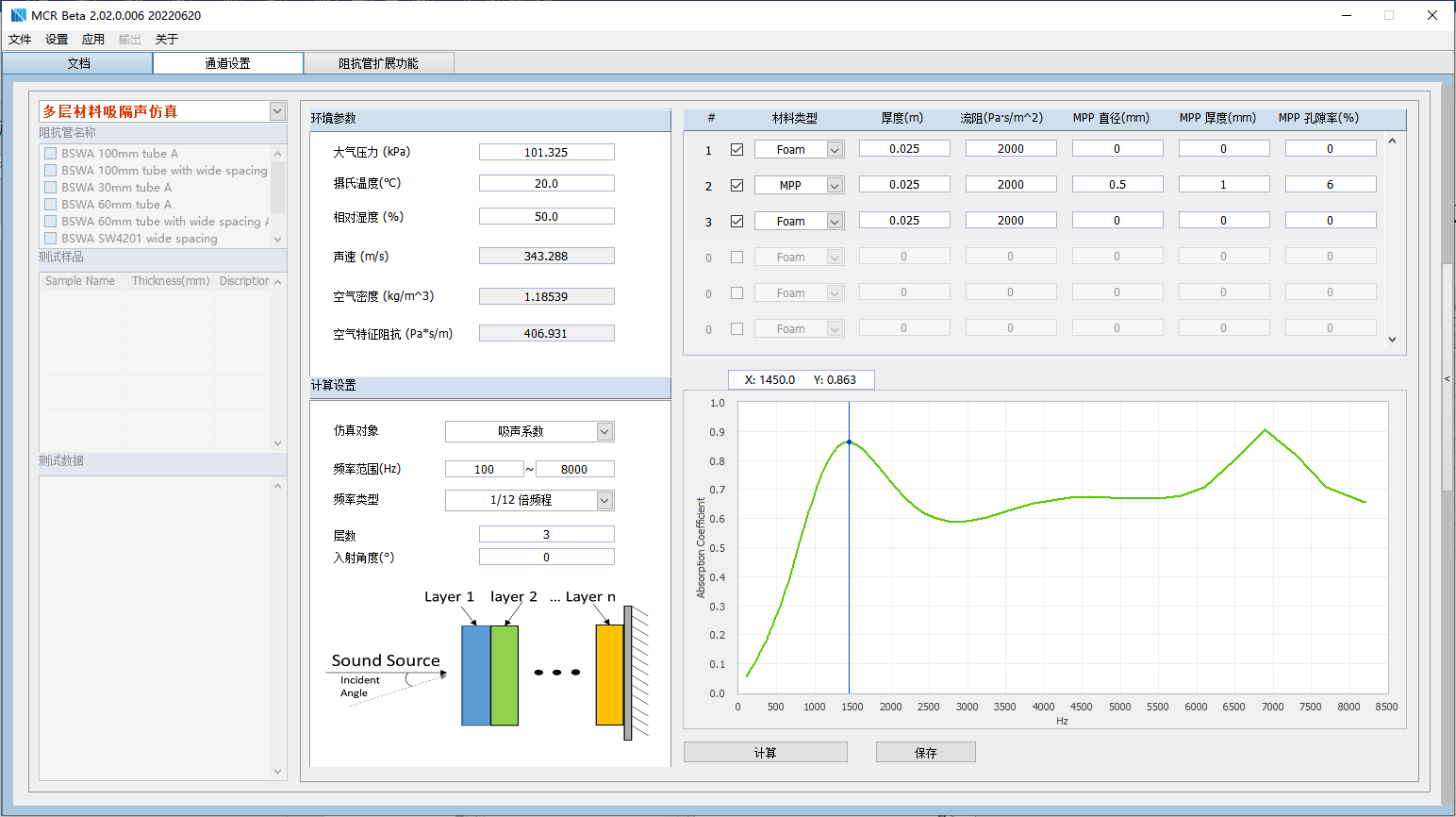 通過不同后空腔距離的表面聲阻抗測試數(shù)據(jù)計算材料特征阻抗